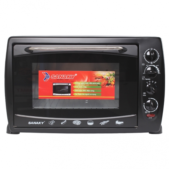Lò nướng Sanaky (ổn định, 50L, 2000W, cửa kính 2 lớp, tiết kiệm điện, 4 thanh nhiệt, hẹn giờ, nhiều phụ kiện, màu đen)