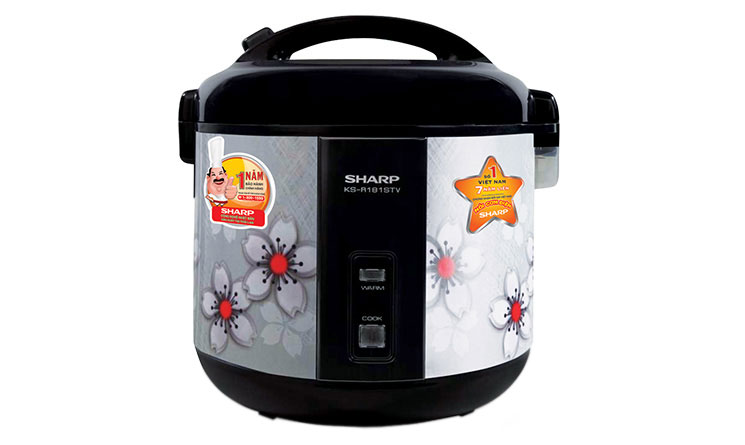 Nồi cơm điện Sharp KS-R181STV (hoa inox, giữ ấm 12h, nút vuông, cơ)