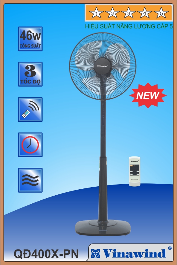 Quạt cây Vinawind QD400X-PN: sải cánh 400mm; có 3 tốc độ, có điều khiển
